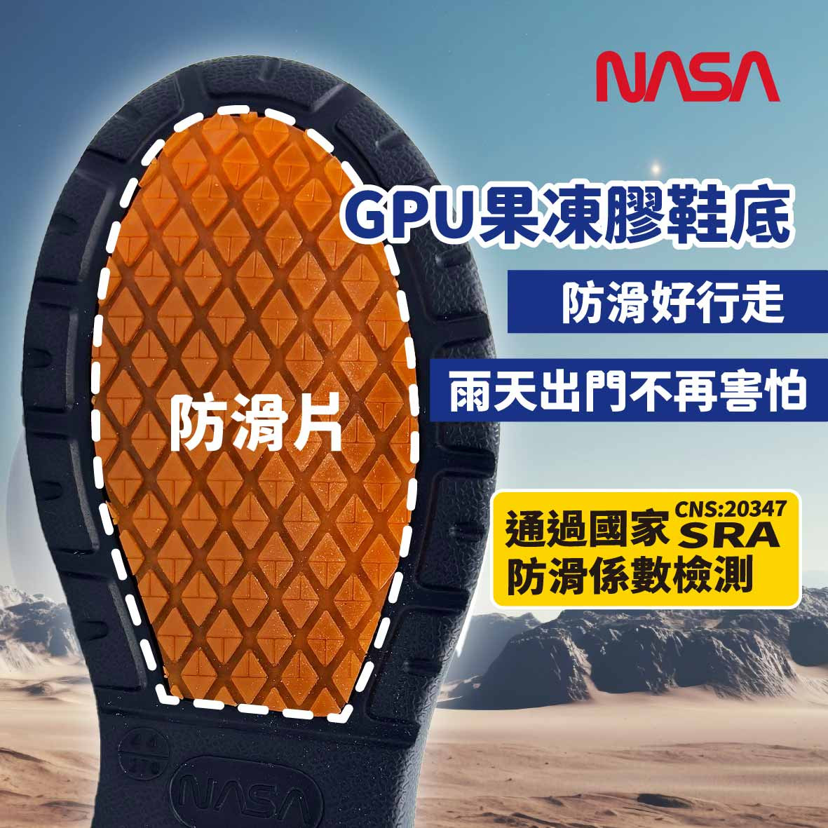 通過國家防滑係數檢測,濕滑地面也能穩穩走。