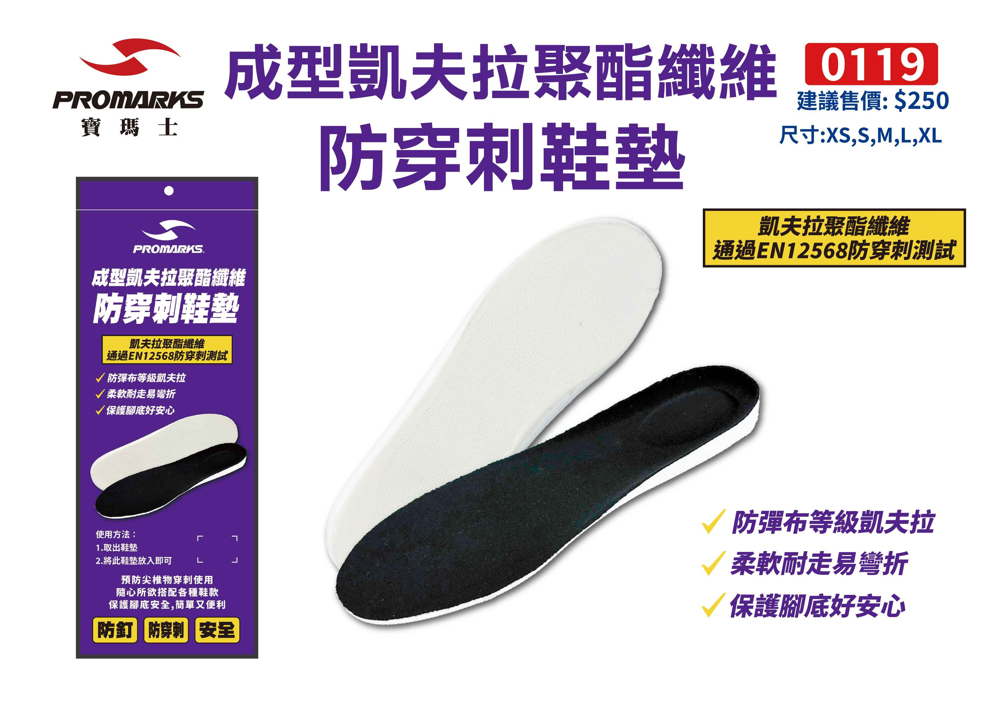 0119 成型凱夫拉聚酯纖維 防穿刺鞋墊